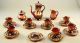 Set of 7 Red Bohemian Glass Cups & Saucers / Creamer / Sugar & Coffee Pot.