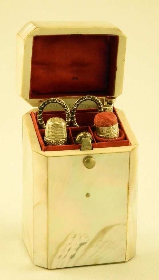 LOT 50 Mother of Pearl Etui Case Complete Interior with Silver Accoutrements, 4 1/4"h. Estimate: $200 - $300 Sold For: $475 Auction Date: Tuesday, October 08 2024 at 4:00 PM