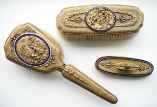 LOT 54 Three Piece French Repousse and Enameled Dresser Set, Estimate: $150 - $250 Auction Date: Tuesday, October 08 2024 at 4:00 PM