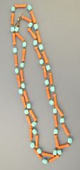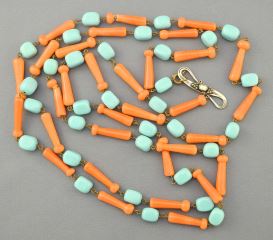 LOT 168 Chinese Turquoise Glass & Coral Glass Bead Necklace with 925 Moonstone Clasp, 60". Estimate: $150 - $300 Auction Date: Tuesday, October 08 2024 at 4:00 PM