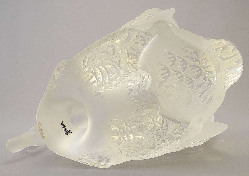 LOT 9 Pair of Lalique France Crystal Swans, 15" and 12", One Chipped on Base - Other Lower Wing. Estimate: $2,000 - $4,000 Sold For: $1,700 Auction Date: Tuesday, October 08 2024 at 4:00 PM
