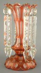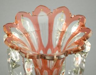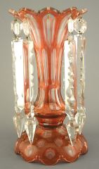 Victorian Cranberry Overlay Cut Glass Lustre, 11".