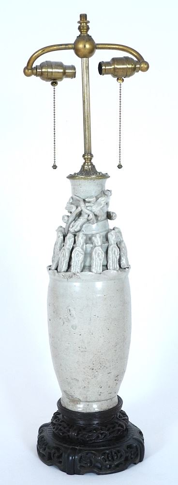 Chinese Song Dynasty Funerary Vase Mounted as a Lamp (as found).