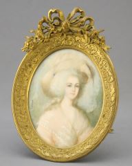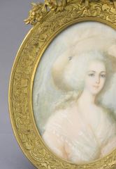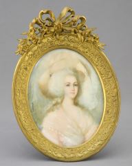 LOT 173 Portrait Miniature of a Beauty in Pink signed Girardin with Brass Frame, 6 1/2"h, NO EXPORT. Estimate: $200 - $300 Auction Date: Tuesday, October 08 2024 at 4:00 PM