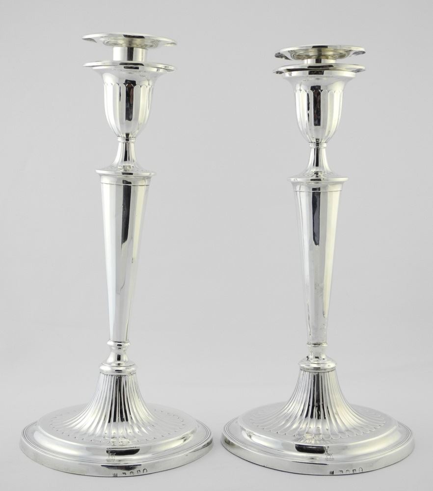 Set of 4 Geo. III (12") Silver Candlesticks with 3 Light Candelabra , Base 1786 Luke Proctor.