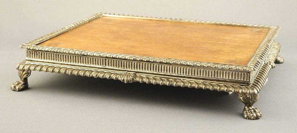 Silver Plate & Mahogany Plateau, Early 20th C., 2" x 10 1/2" x 9".