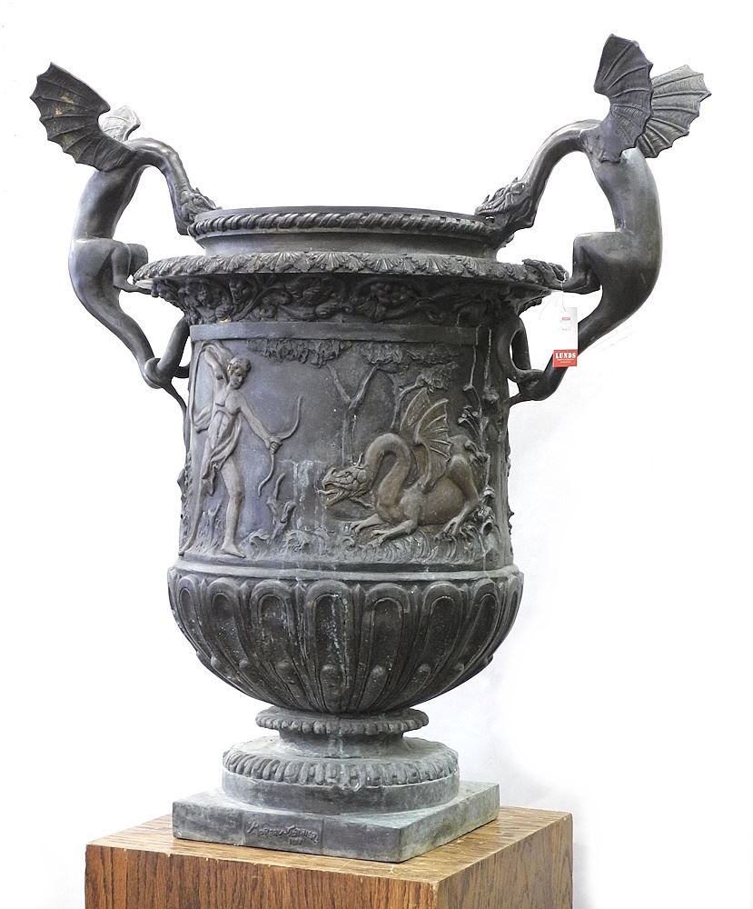 LOT 112 Copper Alloy Neoclassical Urn signed Moreau-Vauthier, 37"h x 34" Wing to Wing. Estimate: $4,000 - $6,000 Auction Date: Tuesday, October 08 2024 at 4:00 PM
