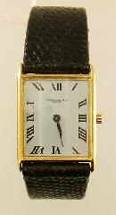 LOT 406 - 18k yellow gold Vacheron Constantin wrist watch, leather strap and 18k hinged clasp.