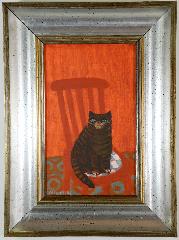 LOT 34 - Oil on canvas signed Fedden, d.1980, 9" x 5 3/4", "The Red Chair with Cat".
