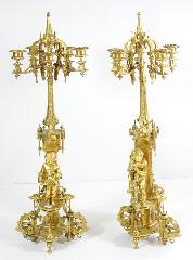 LOT 295 - Pair of Gothic revival gilt metal figured candelabra, overall height 26".