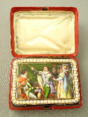 LOT 401 - Early 19th century enamel and pearl musical snuff box with two tunes, 3 3/8" x 2 3/8".