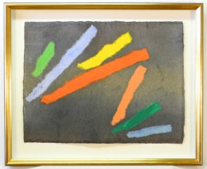 LOT 135 - Acrylic on paper attributed to William Perehudoff, 19" x 25", "Abstract Lines".