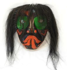 LOT 428 - Cedar "Wild Woman" mask signed Don Smith, with abalone eyes, 16".