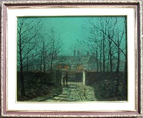 LOT 18 - Oil on panel signed and dated Atkinson Grimshaw 1881, 14 1/2" x 18 1/2", "Moonlit scene".