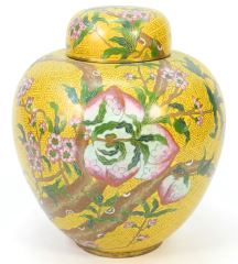 LOT 13 - Large Yellow Ground "Longevity Peach" Cloisonne Jar.