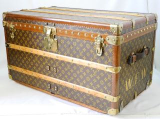 LOT 42 - Louis Vuitton Trunk, serial # 743858 3 keys, monogrammed WFW, 18" x 32" x 18 1/2".