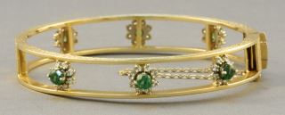 LOT 14 - 14K Yellow Gold Ruby & Diamond Vintage Hinged Bracelet, TW 12.80 grams.