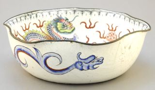 LOT 351 - Chinese Canton Enamel "Dragon" Bowl, cracks & striations noted, 2 3/8" x 7 1/2".