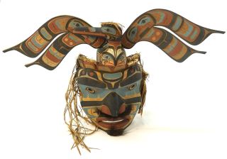 LOT 1 - Kwagiulth Articulated Mask signed Kevin Cranmer, 21"H, "Komokwa with Loon,restoration required.