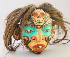 LOT 225 - Northwest Coast Style Human Mask signed Paul Johnny, 9 3/8"H.