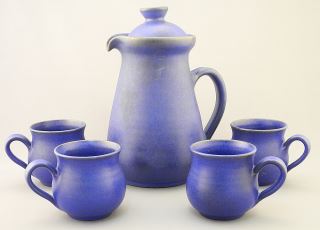 LOT 25 - Grove Pottery Coffee Service, Pot (9 1/4"H) with Cream and Sugar and 6 Cups.