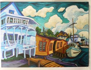 LOT 132 - Acrylic on Canvas signed Fred Peters , 36" x 48", "Cow Bay".