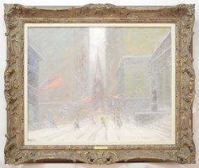 LOT 21 - Oil on Canvas signed Johann Berthelsen, 24" x 30", " Wall Street - Trinity Church".