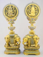 LOT 18 - Pair of Chinese Gilt Bronze & Enamel Elephants, 16 3/8" H, Losses /Coral Noted/ as Found.