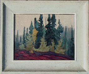 LOT 3 - Oil painting on panel signed Lawren Harris, 10 5/8" x 13 3/4", "Lake Superior Country".