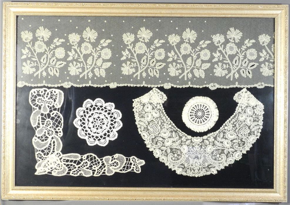 LOT 552 Framed needlework panels from dress of lady presented to Queen Victoria, 28" x 42". Estimate: $50 - $75 Auction Date: Tuesday, September 12 2017 lots 1-215 at 1:00 PM, lots 401-629 at 7:00 PM