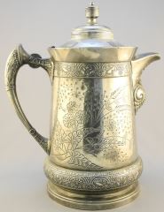 19th Century silver plate Eastlake water pitcher, 12 1/2" high.