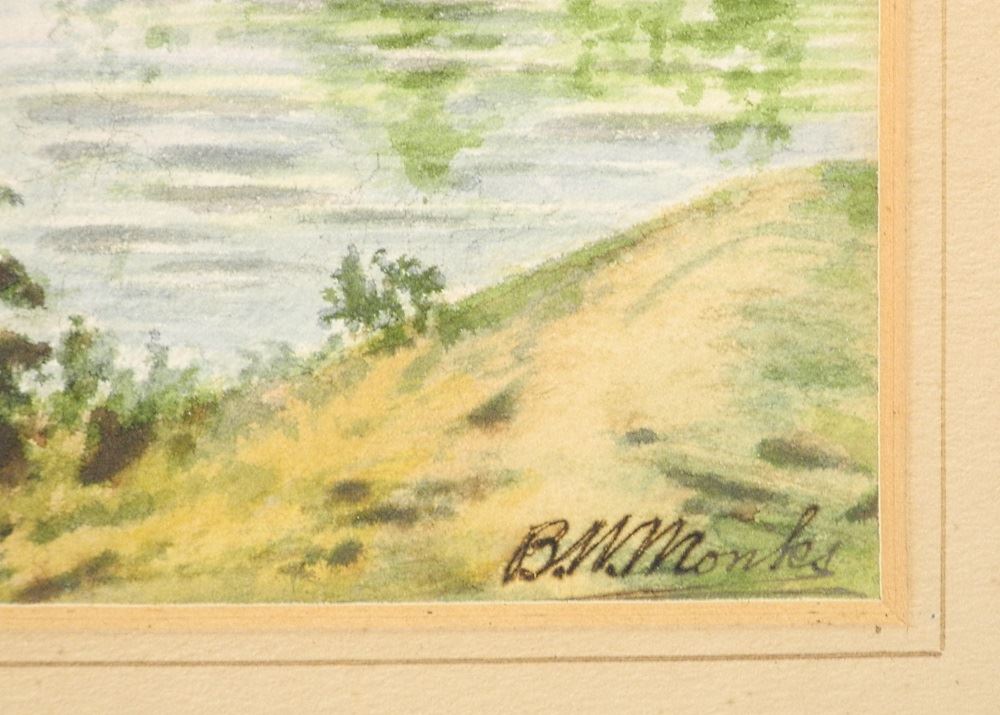 Watercolour signed B.W. Monks 1940, 15" x 10", "Mt.Klista, Sproat Lake, V.I. B.C.".