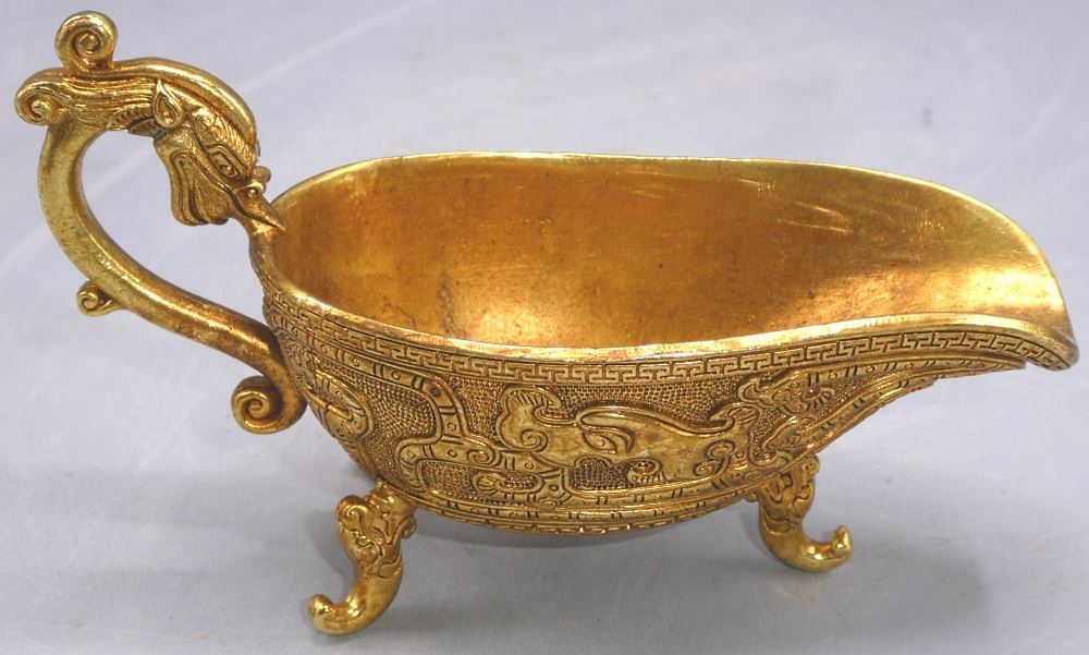 LOT 160 Parcel Gilt "Sons of Dragon" Scoop, Chen-kuan Reign Mark, 5 1/4" length. Estimate: $100 - $150 Sold For: $70 Auction Date: Tuesday, June 08 2021 at 6:00 PM
