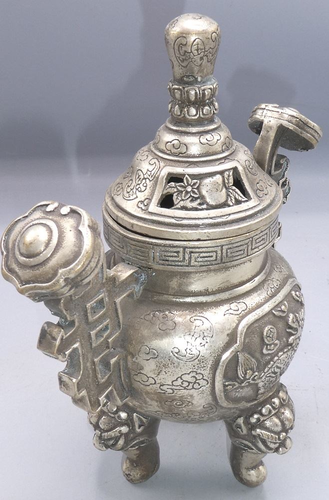 LOT 193 "Fortune of Kirin" Tri Pod Incense Burner, Ch'ieng-lung Mark, 8 1/4". Estimate: $125 - $150 Sold For: $100 Auction Date: Tuesday, June 08 2021 at 6:00 PM