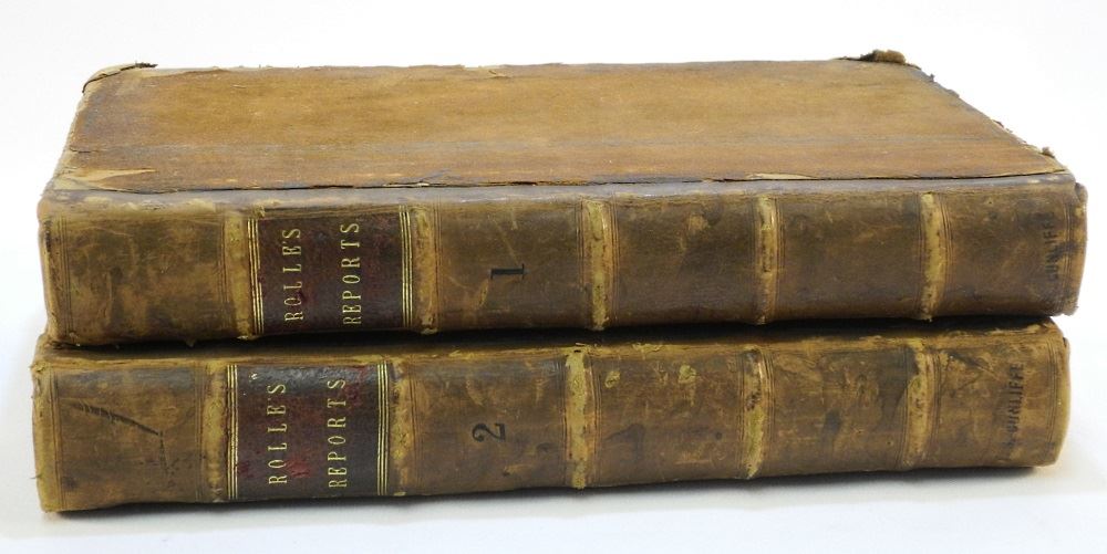 LOT 278 2 Antique Law Books: "Les Reports de Henry Rolle..." A. Roper, London, 1675, 12 3/4" H. Estimate: $200 - $300 Auction Date: Tuesday, June 08 2021 at 6:00 PM