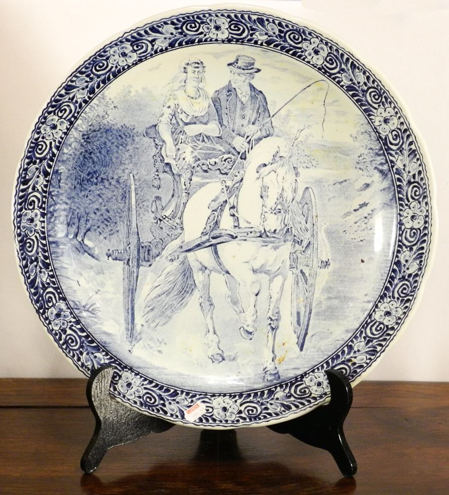 Collection of five various china platters including Blue Willow, etc, condition noted.