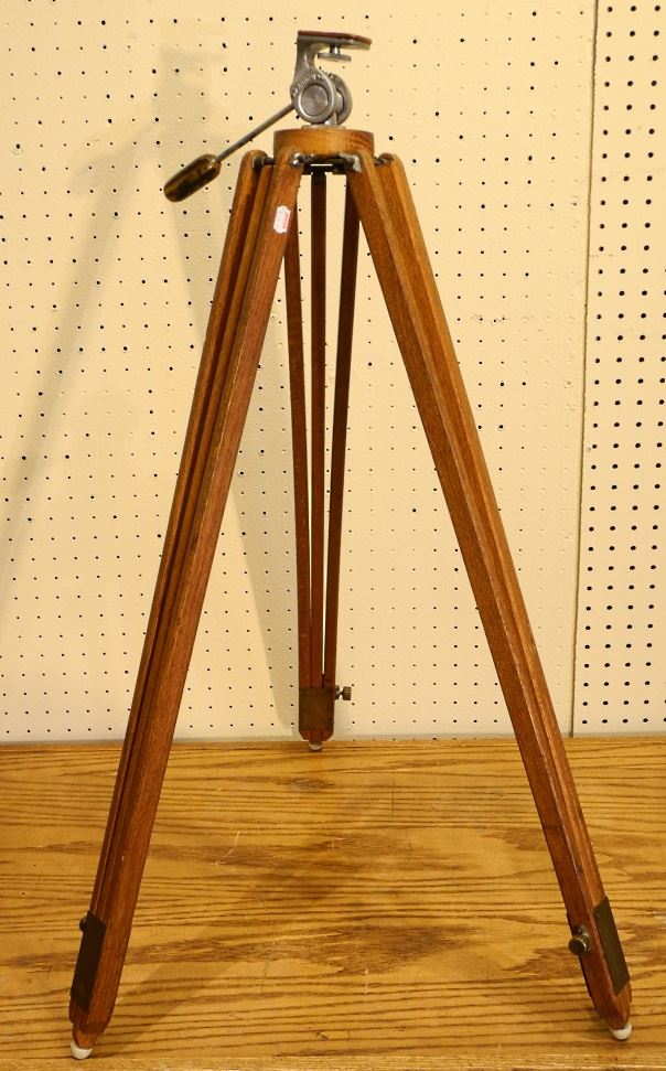 Vintage Oak Tripod with Bakelite Handle, 35" high closed.