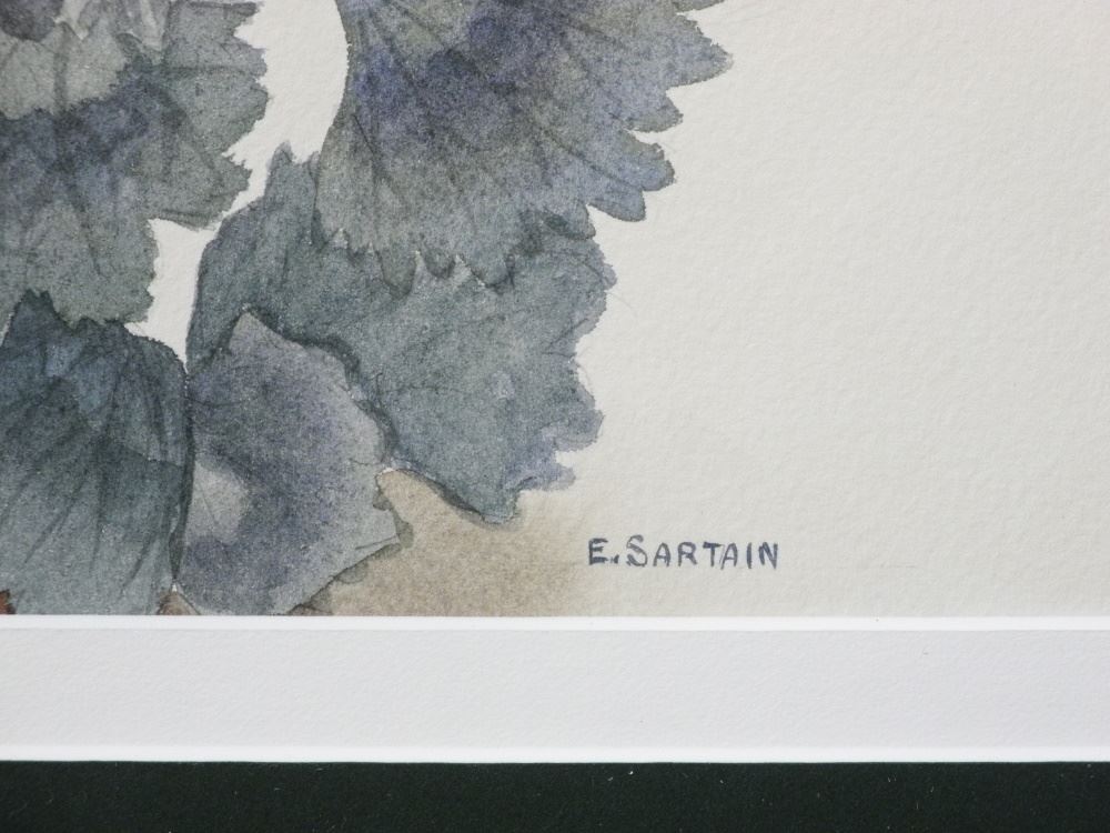 Watercolour signed E. (Emily) Sartain, 10 1/4" x 13 1/4", "Geraniums".
