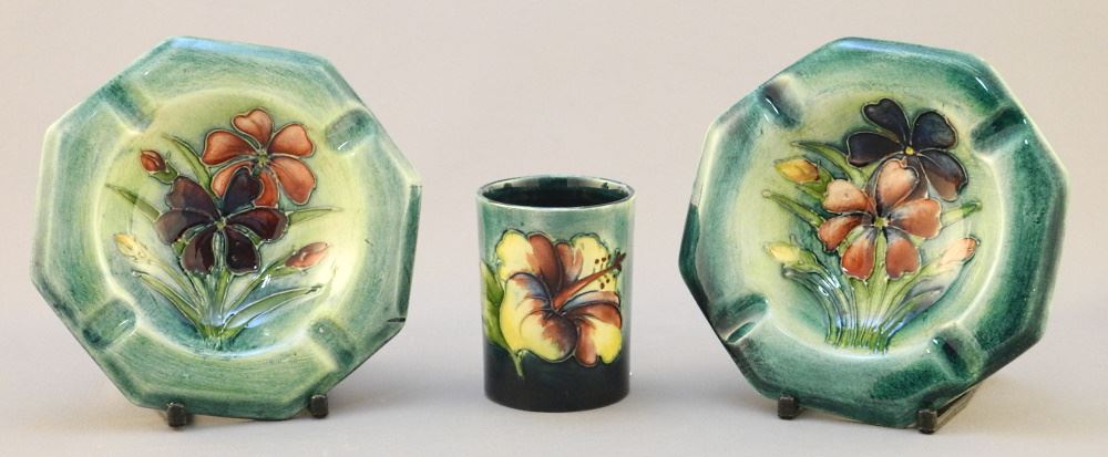 Pair of Moorcroft "Wild Flowers" Ashtrays & a Moorcroft "Hibiscus" Cigarette Holder (2 1/2").