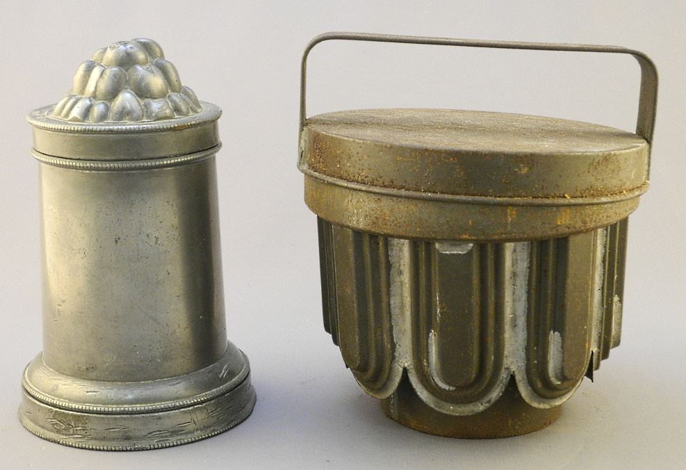 Victorian Pewter Ice Cream Mold, 6 1/2" x 4 1/4" & a Metal Jelly Mold 6" x 6 1/4".