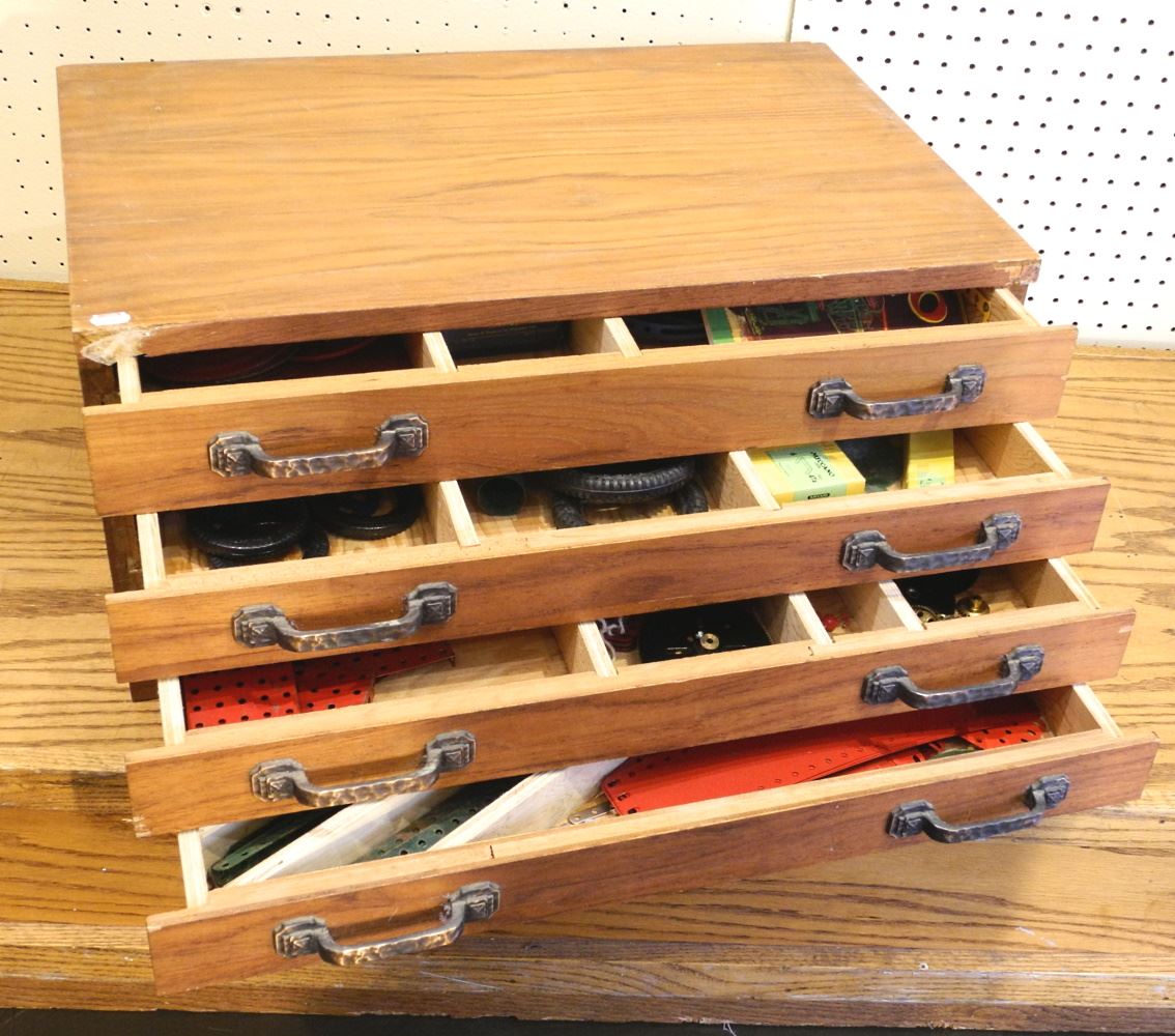 LOT 68 Meccano No.10 Set in Wood Box, 4 Drawers (older), Estimate: $60 - $100 Sold For: $180 Auction Date: Tuesday, January 18 2022 at 6:00 PM