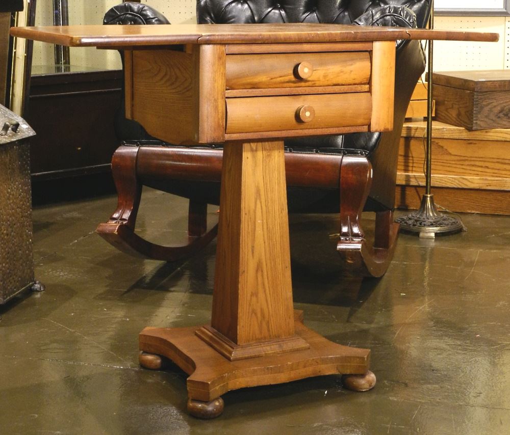 LOT 351 19th Century Mahogany Dropside Work Table, 27 5/8" high. Estimate: $50 - $100 Sold For: $140 Auction Date: Tuesday, January 18 2022 at 6:00 PM