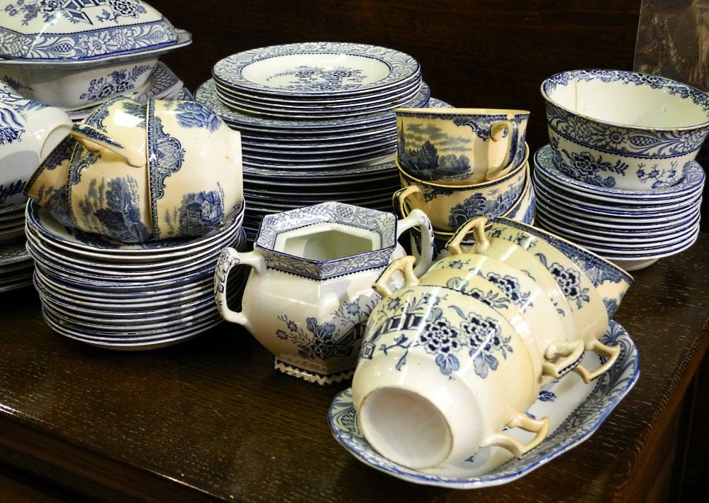 2 Boxes of Blue & White Dinner Ware, Various Patterns.