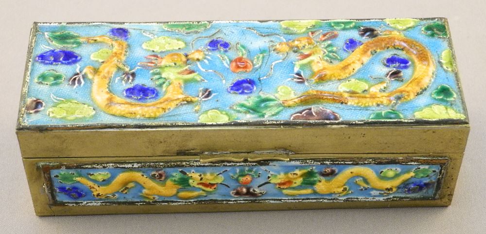 Chinese Enamel Stamp Box, 4 3/8" length.