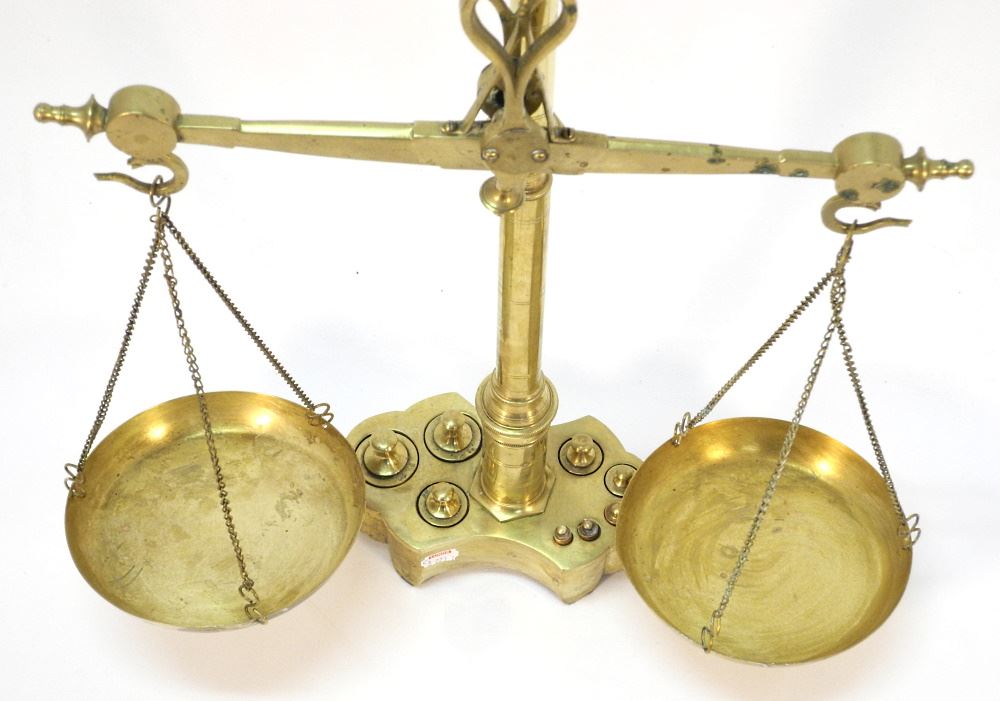 LOT 43 Set of Brass Scales with Weights. Estimate: $50 - $100 Sold For: $90 Auction Date: Tuesday, May 03 2022 at 6:00 PM