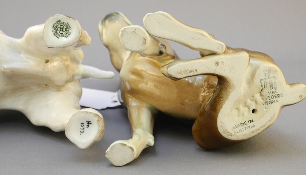 LOT 113 Collection of 3 Dog Figurines: 1 Royal Doulton & 2 Royal Belvedere, Tallest 8 1/2". Estimate: $50 - $80 Sold For: $50 Auction Date: Tuesday, May 03 2022 at 6:00 PM