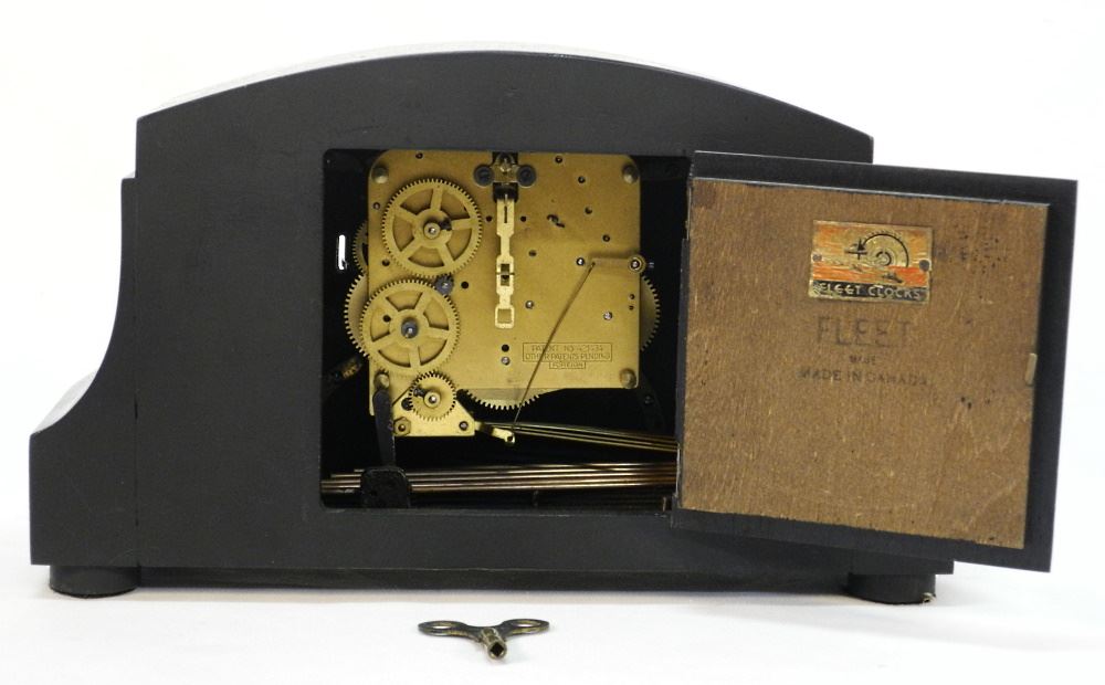 LOT 48 Ebonised Mantle Clock with Chrome & Steel Dial, 14 1/8" Wide. Estimate: $50 - $60 Sold For: $10 Auction Date: Tuesday, July 12 2022 at 6:00 PM