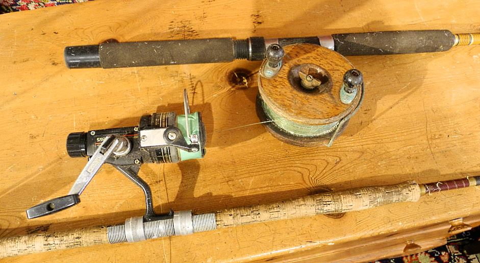 2 Fishing Rods, 1 with Vintage Mahogany Reel, as Found.