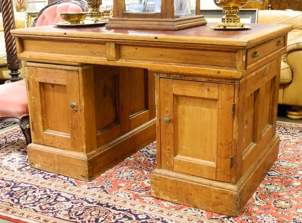 John Harvie Cabinet Maker Pine Partner's Desk, Drawer Signed.
