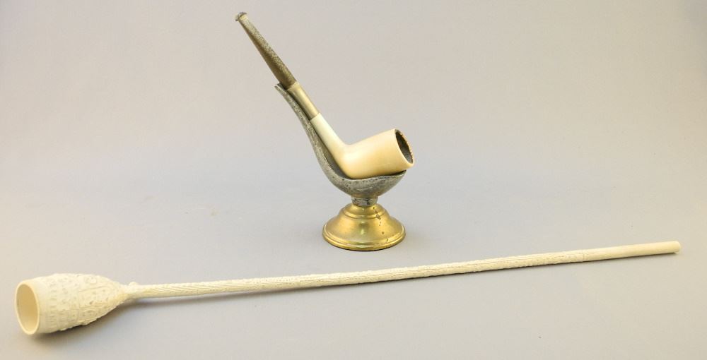 LOT 382 2 Dutch Pipes: 1 Meerschaum with Stand/ 1 Clay, 15" Length. Estimate: $50 - $60 Sold For: $20 Auction Date: Tuesday, July 12 2022 at 6:00 PM